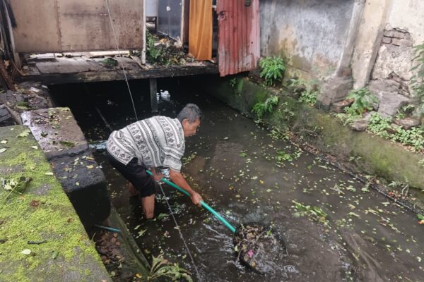 Aksi Ketua RT di Gaddong, Bersihkan Drainase Perbatasan Dua Kelurahan