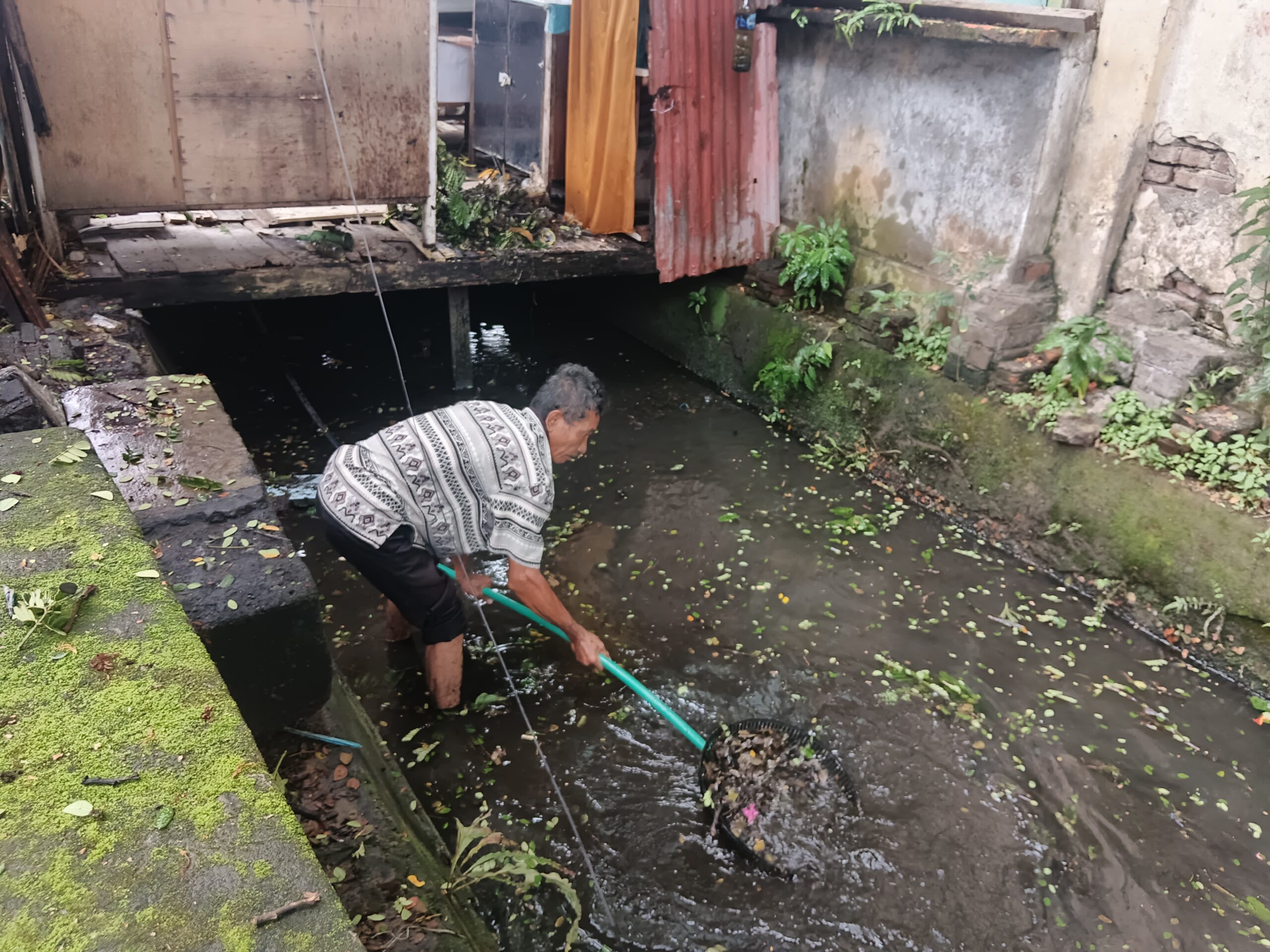 “Kalau dibiarkan, air bisa meluap dan mengganggu warga di dua wilayah. Jadi saya bersihkan dulu semampunya sambil menunggu penanganan lanjutan,” katanya.