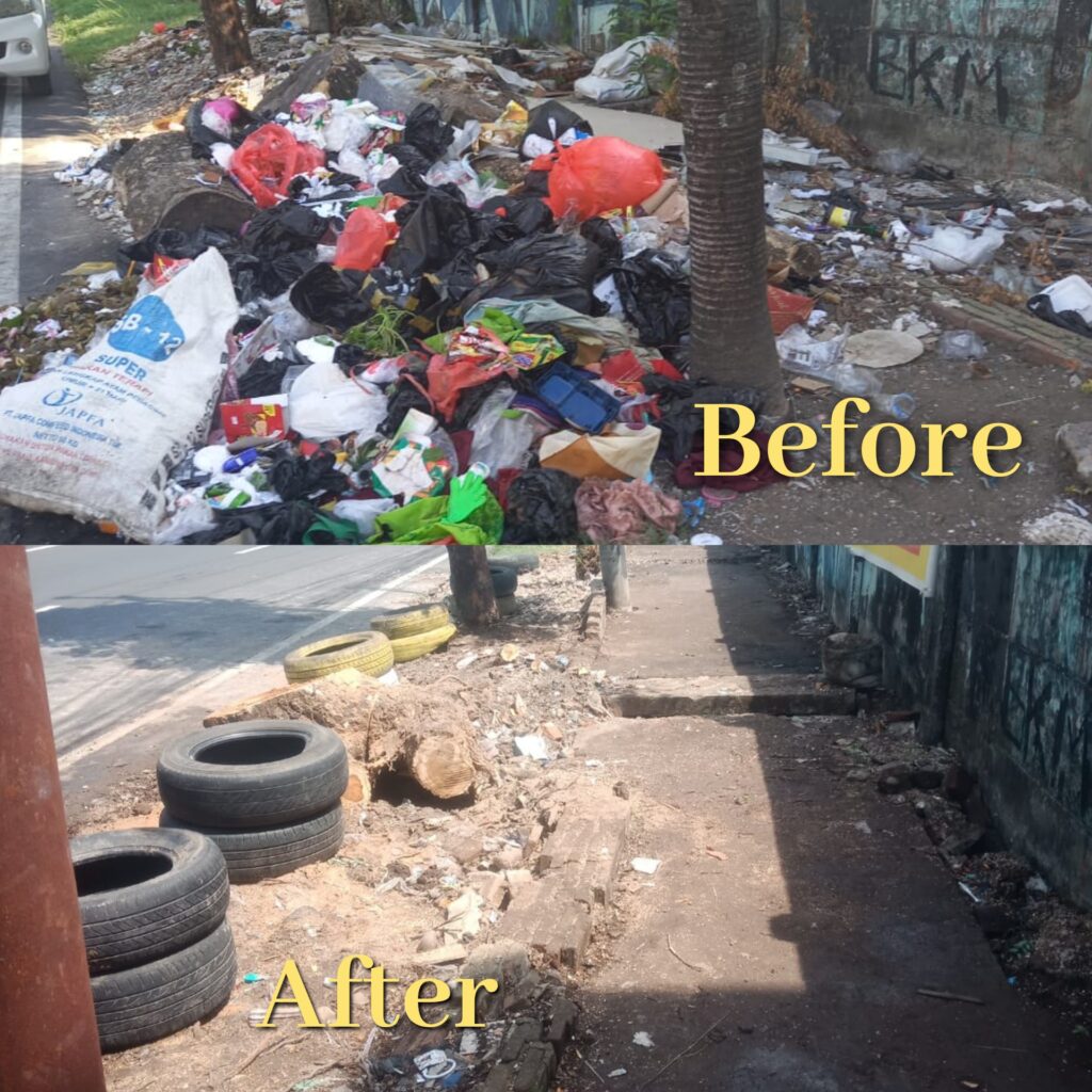 Namun setelah kerja bakti dilakukan, kawasan tersebut berubah drastis—bebas dari sampah dan kembali nyaman untuk dilalui pejalan kaki.