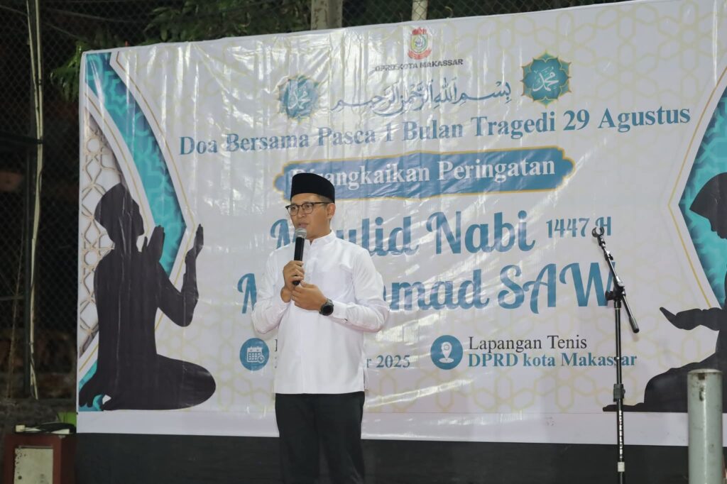JURNALISTA.ID, MAKASSAR – Ketua DPRD Kota Makassar, Supratman, memastikan seluruh agenda kedewanan tetap berjalan meski gedung DPRD sedang dalam proses penyesuaian. Hal itu ia sampaikan pada doa bersama dan peringatan Maulid Nabi Muhammad SAW 1447 H yang digelar DPRD Makassar, Selasa (30/9/2025) malam.