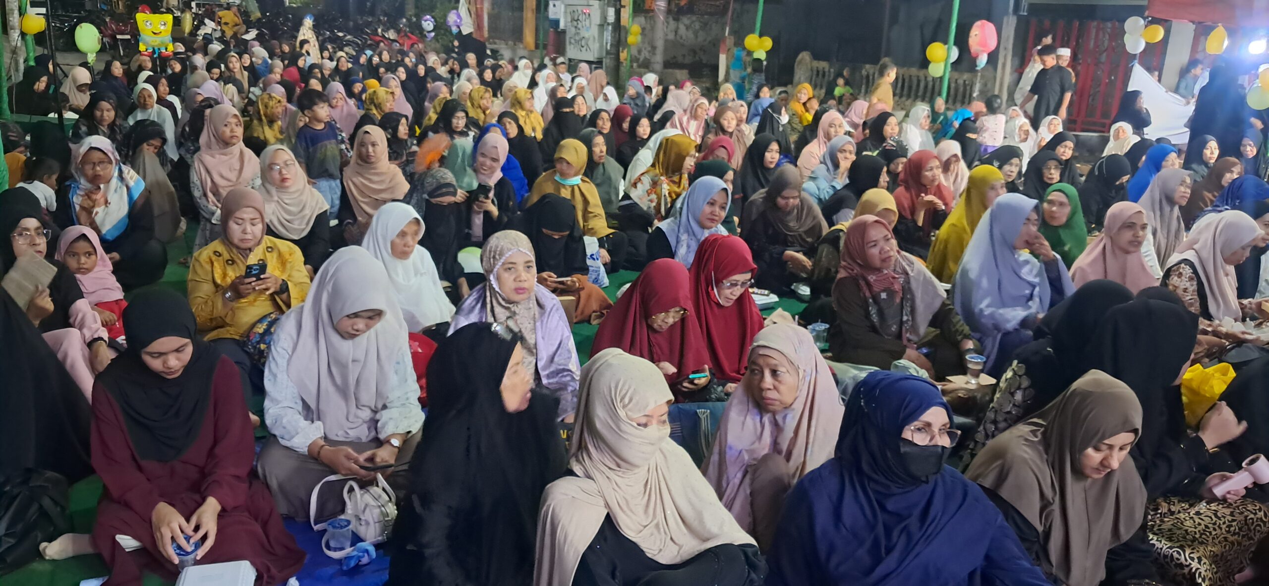 JURNALISTA.ID, MAKASSAR – Ratusan jamaah tumpah ruah memenuhi area acara, membentuk lautan manusia yang khusyuk dalam perayaan Maulid Akbar yang digelar oleh Majelis Darul Musthofa.