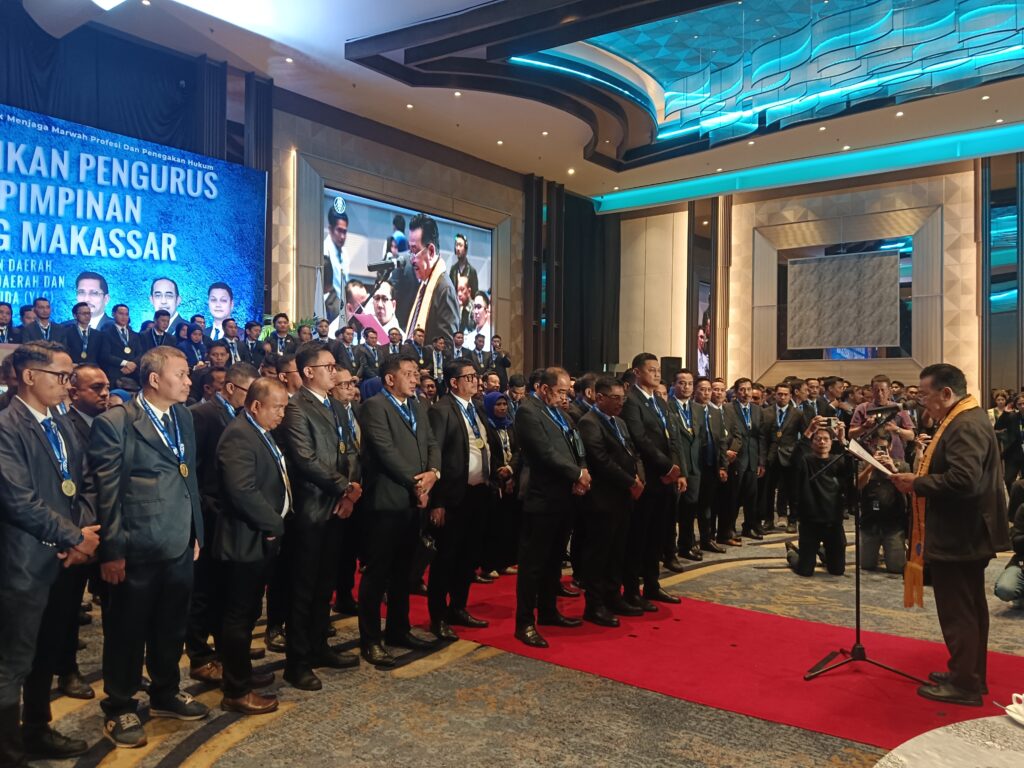 JURNALISTA.ID, MAKASSAR – Ketua Umum Dewan Pimpinan Nasional (DPN) Perhimpunan Advokat Indonesia (PERADI), Prof. Dr. Otto Hasibuan, S.H., M.M., secara resmi melantik dan mengambil sumpah jabatan sebanyak 500 pengurus Dewan Pimpinan Cabang (DPC) PERADI Makassar masa bakti 2025–2030. Prosesi pelantikan berlangsung khidmat di Sandeq Ballroom, Hotel Claro Makassar, Sabtu (17/1/2026).