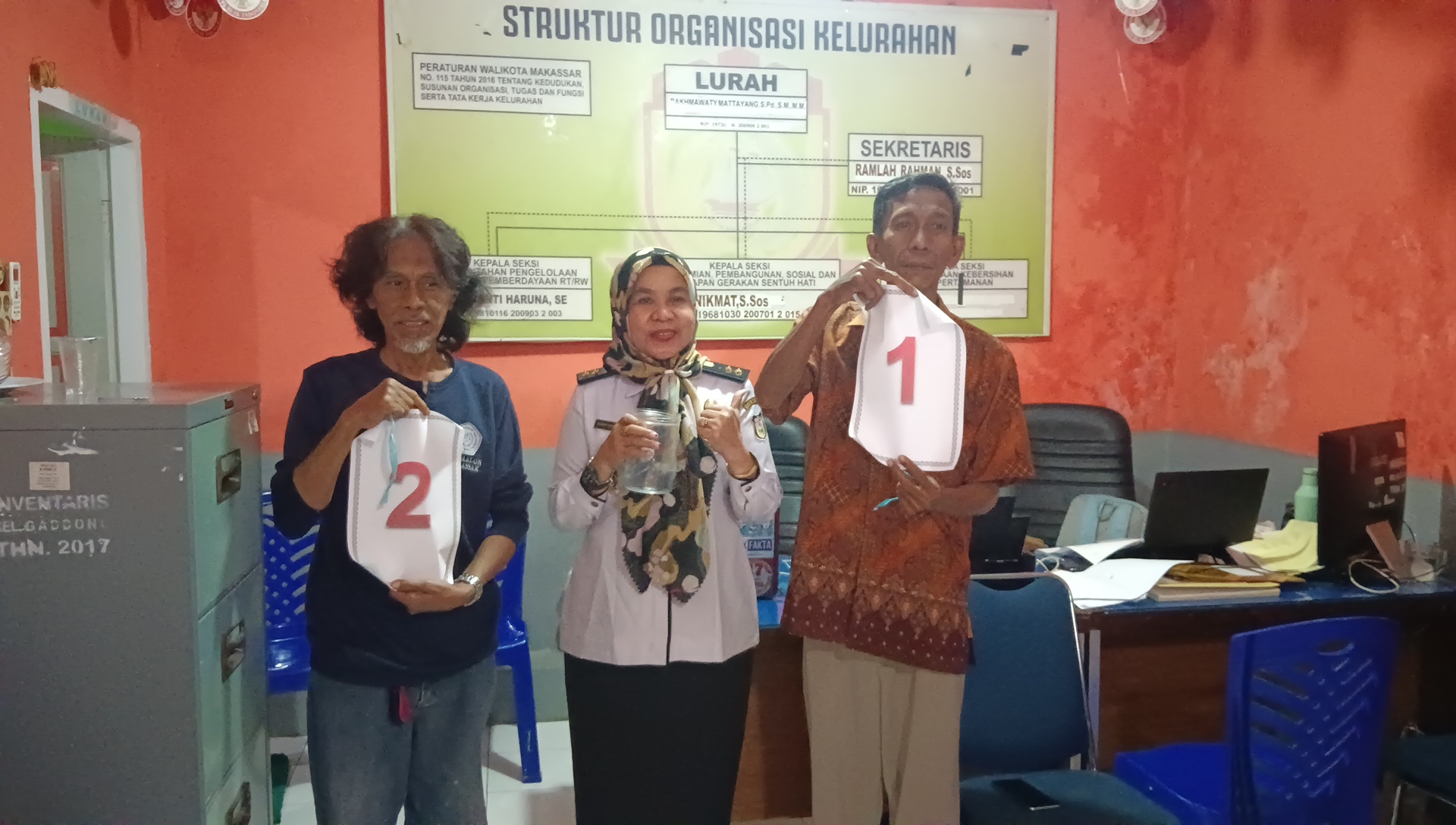 Proses pencabutan nomor urut digelar di Aula Kantor Kelurahan Gaddong dan dipimpin langsung oleh Lurah Gaddong, Rakhmawaty Mattayang, S.Pd., S.M., M.M., yang memastikan seluruh rangkaian berlangsung lancar sesuai mekanisme Rabu, 26 November 2025 .